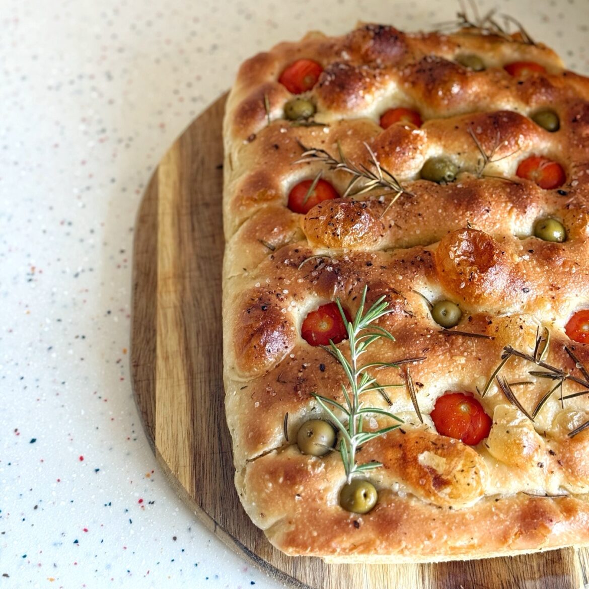 Nakom mirovanja rukama tijesto još malo razvucite i pospite uljem, himalajskom soli, rajčicama i ružmarinom.