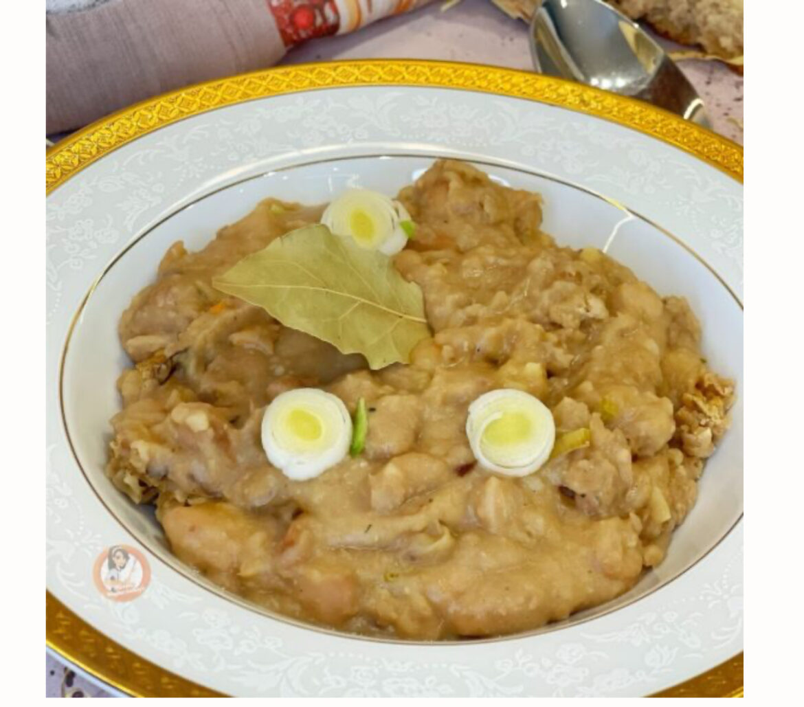 Dodajte začine i kuhajte još 5 minuta. Dok se to kuha praziluk nasjecite na krugove i dinstajte na vodu. Ovdje dodajte i lovorov list. Zatim grah procjedite u neku šerpu i ostavite tu vodu ako zatreba da razrjedite. Štapnim mikserom izblendajte grah. Recimo 80% graha blendajte a ostatak ostavite u zrnu. Vodu iz graha imate ako bude pregusto.