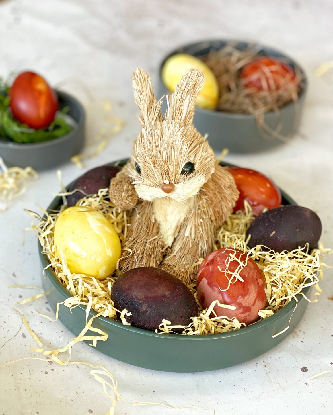 Kurkuma: u 1 l vose stavite 3 kašike kurkume. Kuhajte jaja 20 minuta. Ostavite ih da se ohlade u toj vodi. Osusite ih i premažite uljem.