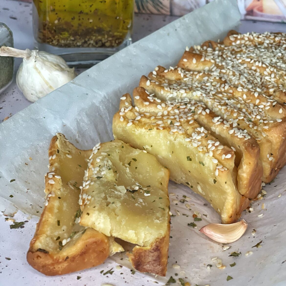 Kada je nadošlo razvucite u pravougaonik i namažite premazom. Rasjecite na trake, slažite jednu na drugu i onda ih nasjecite kao na snimku. Premažite žumanjkom, pospite susamom i pecite dok ne porumeni. Neka vas ne zbuni ako bude kao natopljen hljeb, to se desi ako je maslac malo masniji i to je ok. Kada probate shvatićete koliko je mekano i ukusno. Uživajte