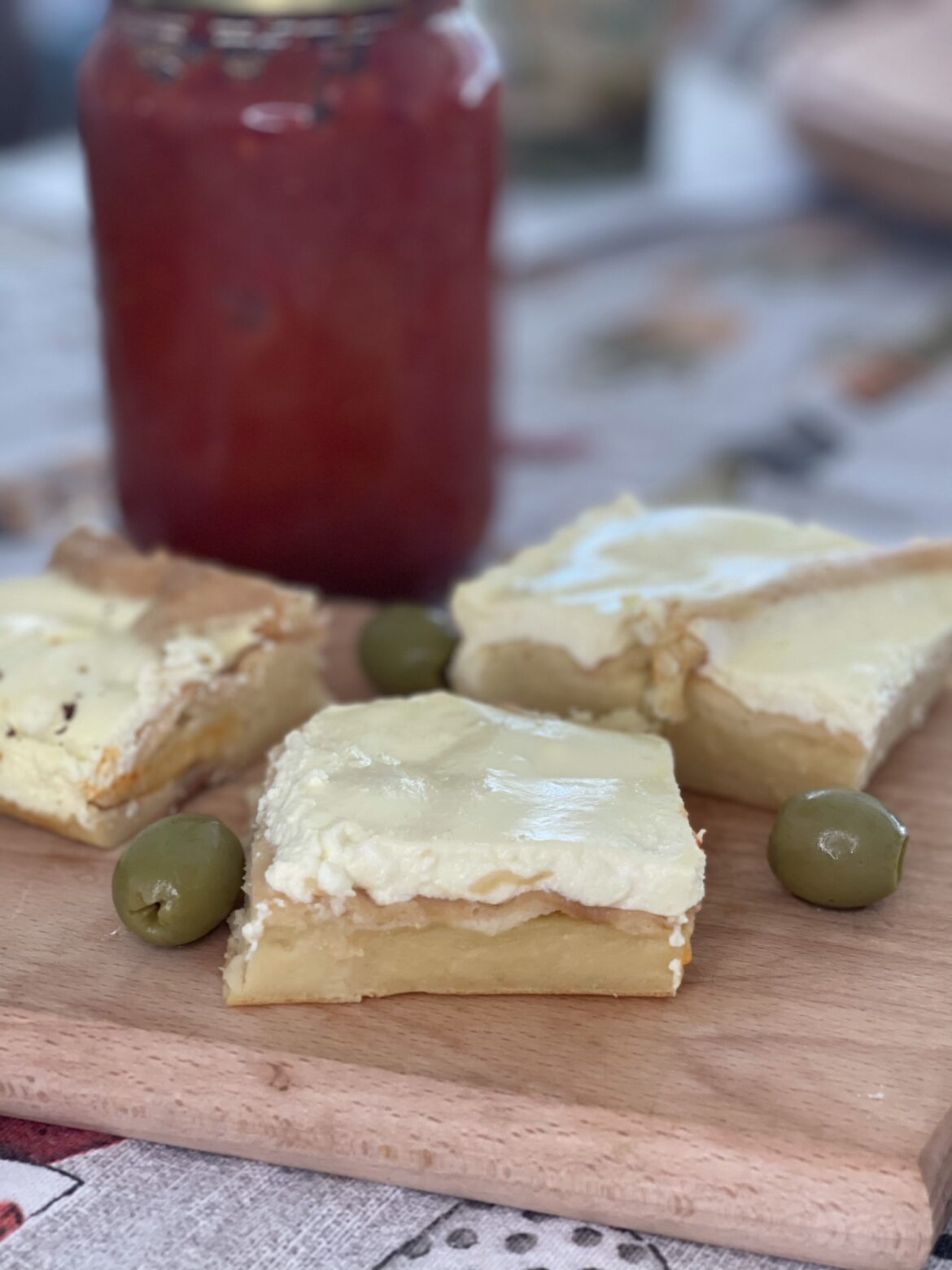 Dobro umutite i izlijete na pek papir. Bitno je da je tepsija veća da vam tijesto ne bude predebelo. Pecite na 220° dok tijesto ne dobije zlatno žutu boju. Prelijete sa prelivom kada je mekuša porumenila i zapečete još nekih 10-ak minut. To je to, prosto kao pasulj. Uživajte.