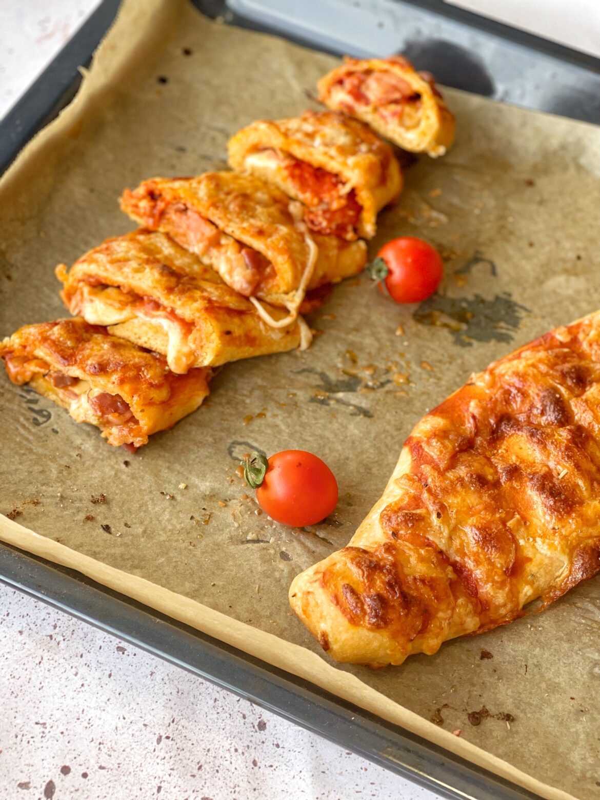 Namažite sa pavlakom i kečapom. Stavite mortadelu, kulen jedan sir i na kraju mocarelu i drugi sir. Uvijete štapić i okrenete ga i premažete maslinovim uljem, pa kečapom i pavlakom i pospete sa narendanim sirom. Pecite dok ne porumeni i onda stavite dodatno mocarele i kada se ona otopi jelo je gotovo. Uživajte.