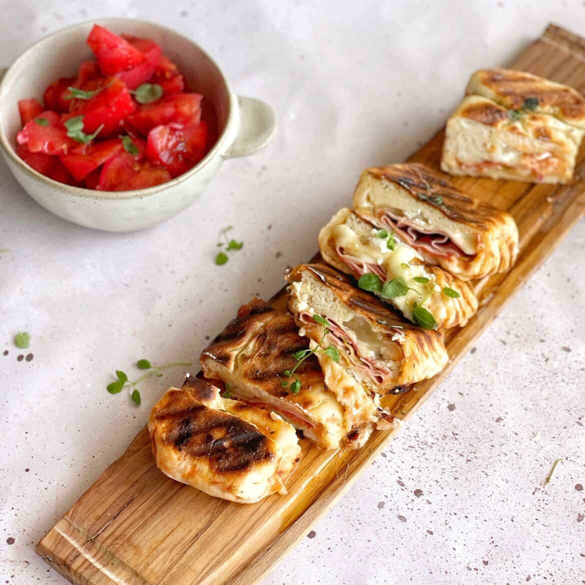 Zamjesite tijesto od brašna, jogurta, praška za pecivo, soli, bijelog luka u prahu. Razvucite tijesto, izbockajte viljuškom i stavite prvo kašiku pavlake i kašiku kečapa, feta sir, mocarelu. Umotajte i pecite na suhoj gril tavi sa svih strana.