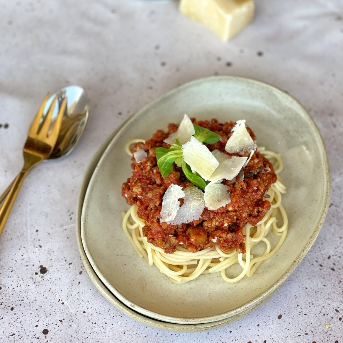 U wok stavite prvo ulje pa luk i malo protresite samo da luk omekša. Potom dodajte meso. Malo opet protresite wok. Dodajte začine i sos. Promješajte i ubacite sir pa sjemenke a potom i ljute papričice. Sve dobro izmješate i prelijete preko špageta. Preko nasjecite parmezana. Uživajte