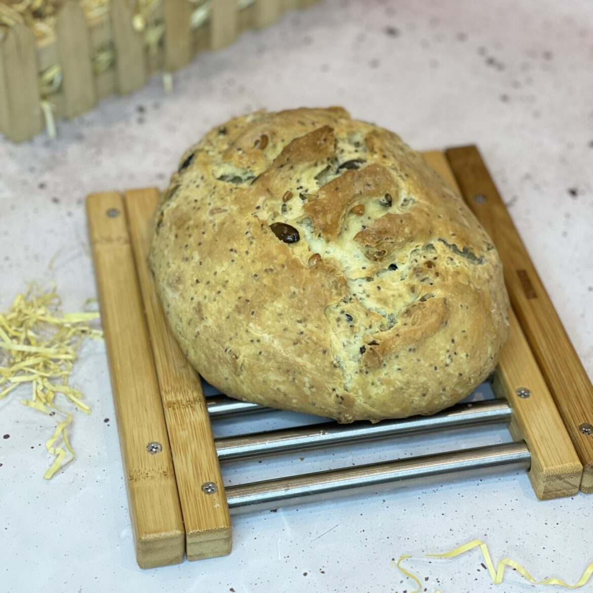 Ostavite 1 sat na sobnoj temperaturi i potom premjesite hljeb i napravite krug koji stavite u tepsiju. Makazama malo nasjecite vrhove i pecite na 220° nekih 45 minuta. Uživajte.