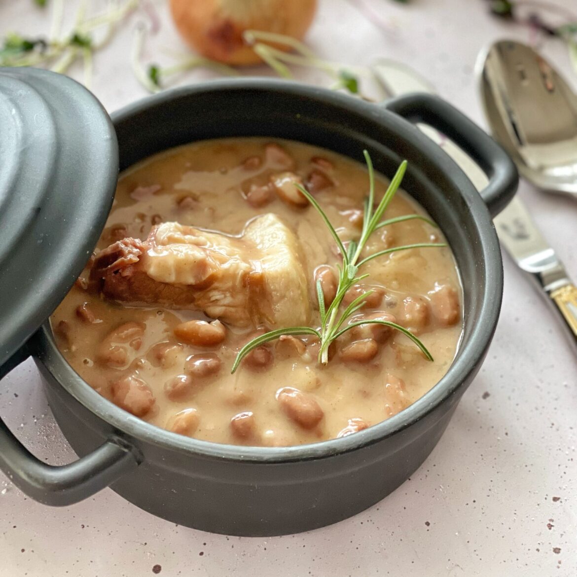 Grah natopim u vodi noć prije obavezno. Ujutru ga prvo skuham 10 minuta u jednoj vodi i prospem tu vodu te nalijem u lonac novu hladnu. Rebarca i slaninu takodje stavite prvo u jednu vodu. Njih kuham 15 minuta prije nego što ih sjedinim sa grahom.