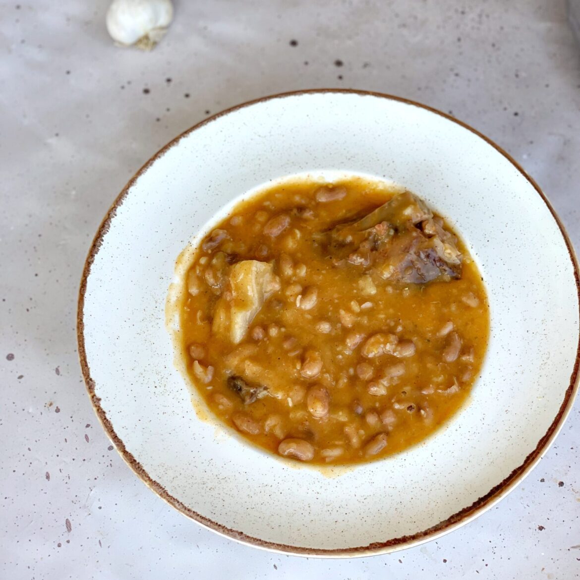 Grah natopim u vodi noć prije obavezno ili par sati u toku dana. Potom ga prvo skuham 10 minuta u jednoj vodi i prospem tu vodu te nalijem u lonac novu hladnu. Rebarca i slaninu takodje stavite prvo u jednu vodu. Njih kuham 15 minuta prije nego što ih sjedinim sa grahom.