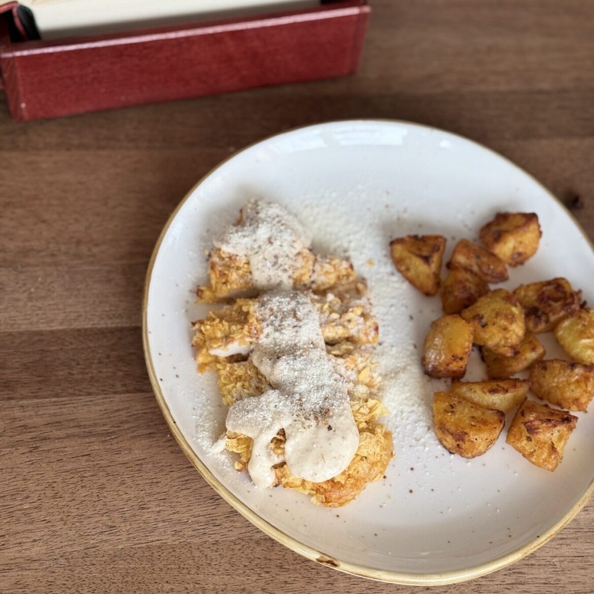 Krompir ogulite i ostavite 30 minuta u hladnoj vodi. Nakon toga ga nasjecite, skuhajte 8 minuta u slanoj te procjedite. Vratite u posudu, dobro promdrmajte pa izlijete u tepsiju. Začinite i pecite na 230° nekih 30 minuta. Na svakih 10 ga promješajte. Nekom će trebati manje i a nekom više da se ispeče pa pratite sami svoju rernu. Gotov je kada dobijete ovu zlatnu boju. Prijatno.
