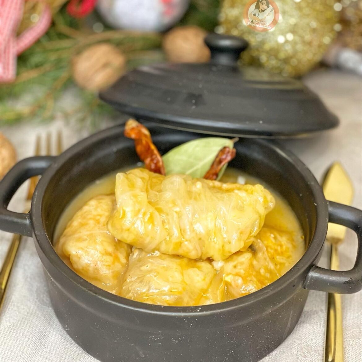 Kupus malo isperite u vodi. U smjesu od riže i gljiva dodajte sada nasjeckanu ribu i dobro izmješajte. Na dno lonca poredate par listova kupusa i motate sarmu kao na snimku (na kraju slajda) pa redate sarmu. Prelijte vodom te kuhajte u ekspres loncu 20 min. U običnom loncu 1-1,5 sat kuhati. Potom u skuhanu sarmu u dodajte smjesu od brašna da malo zgusne i kuhajte 4-5 minuta. Ja zapršku nikad ne pravim već samo ovo. Uživajte