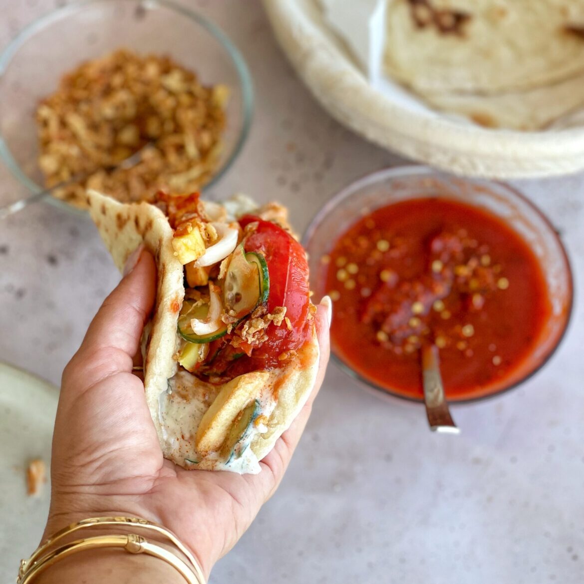 pelat(može i kečap) + ljuta sasa + čili tucani + slatko/ljuti čili umak