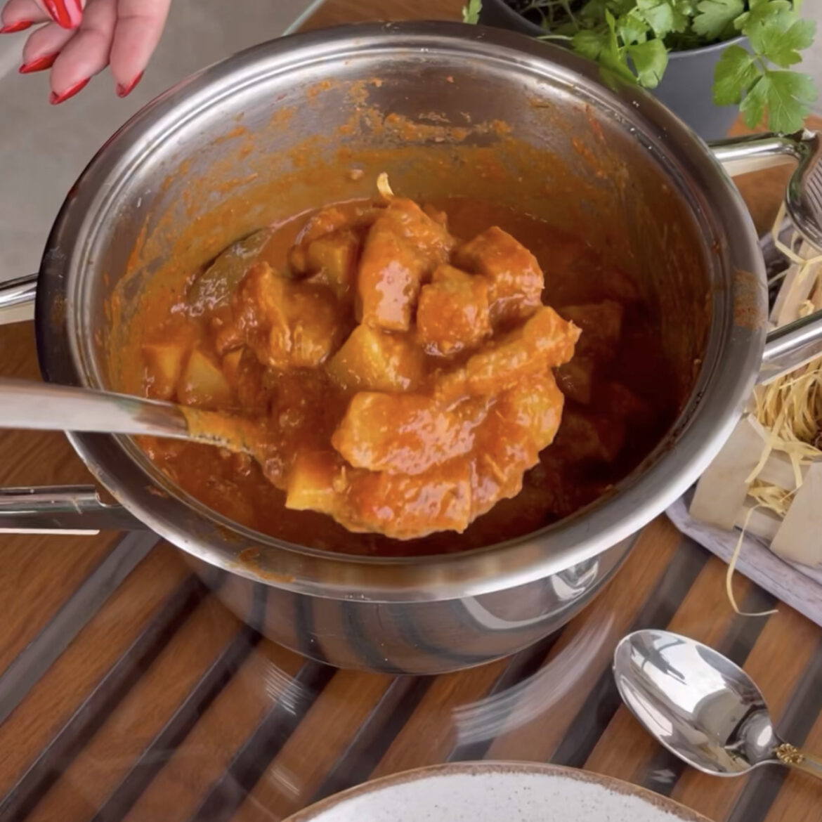 Zatim ubacite krompir i pelat i kuhajte još 15-ak minuta. Na kraju dodajte začine i gervic i kuhajte još 5 minuta (sve sastojke za gervic stavite u blender i samo smiksajte). Uživajte