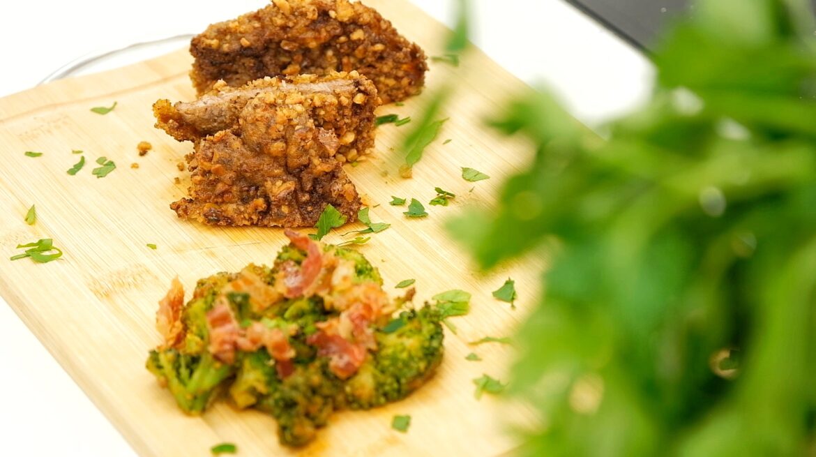 Šnicle prvo rastanjite sa tučkom za meso. Marinirajte i ostavite 5 minuta. Orase usitnite. Meso valjamo u brašno, jaja pa na kraju u orase. Peći na ulju od sjemenki grožđa (ili ulje koje koristite) dok ne porumene sa obe strane.