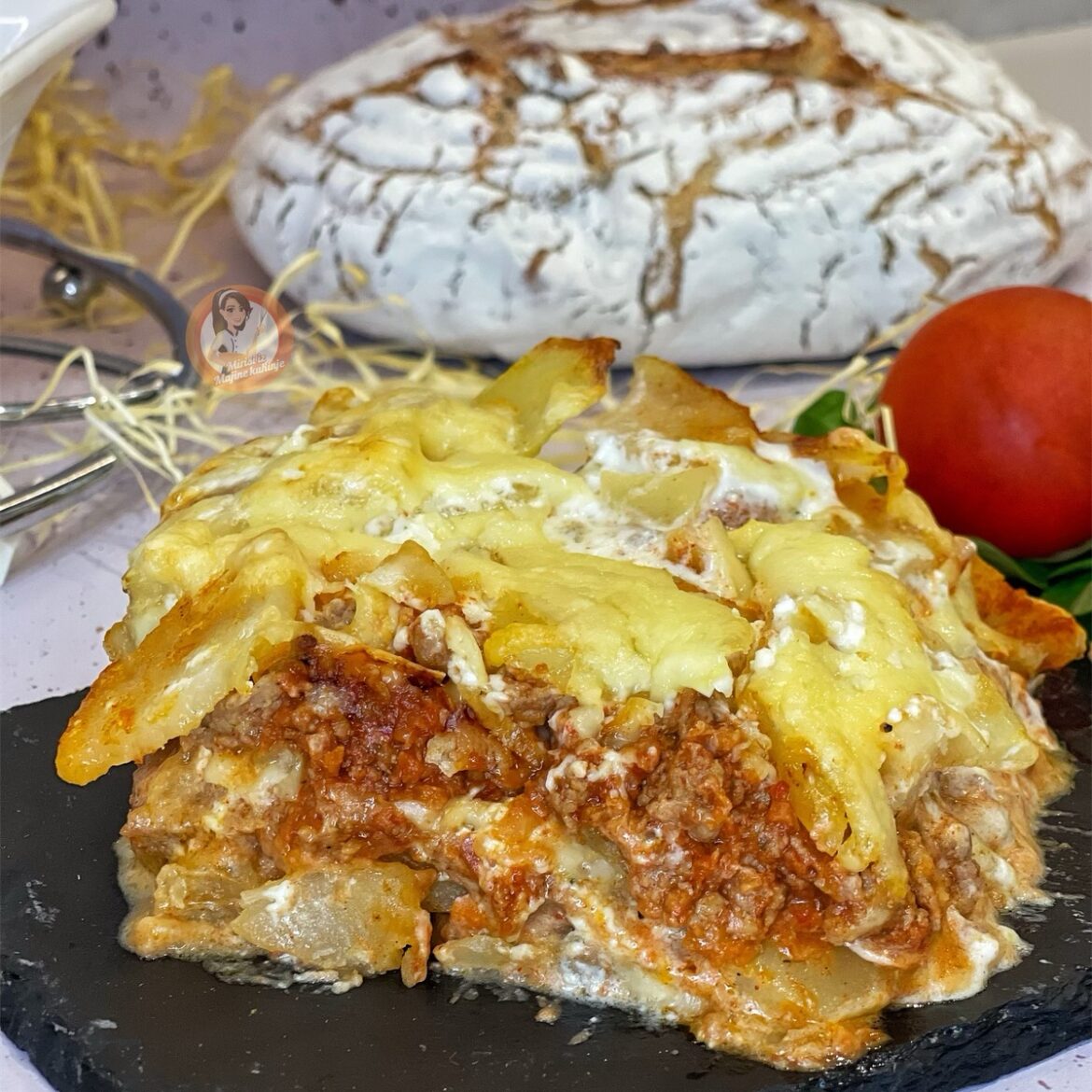 Tepsiju malo nauljite (ja sam redala u male posude) i stavite prvo krompir, pa meso, pa 2-3 kašike vrhnja, pa sira, pa opet krompir, meso, sir i sve tako do kraja. Na vrhu treba da stoji krompir sa sirom i vrhnjem (imate video pored). Pecite na 22° dok ne porumeni. Uživajte