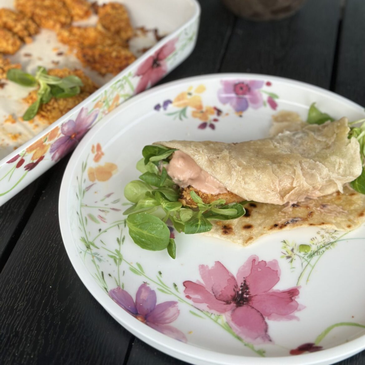 Piletinu začinite, uvaljajte u corn fleks u koji isto ubacite malo začina. Pecite i rerni na 220° nekih 35 minuta (do zlatno žute boje).