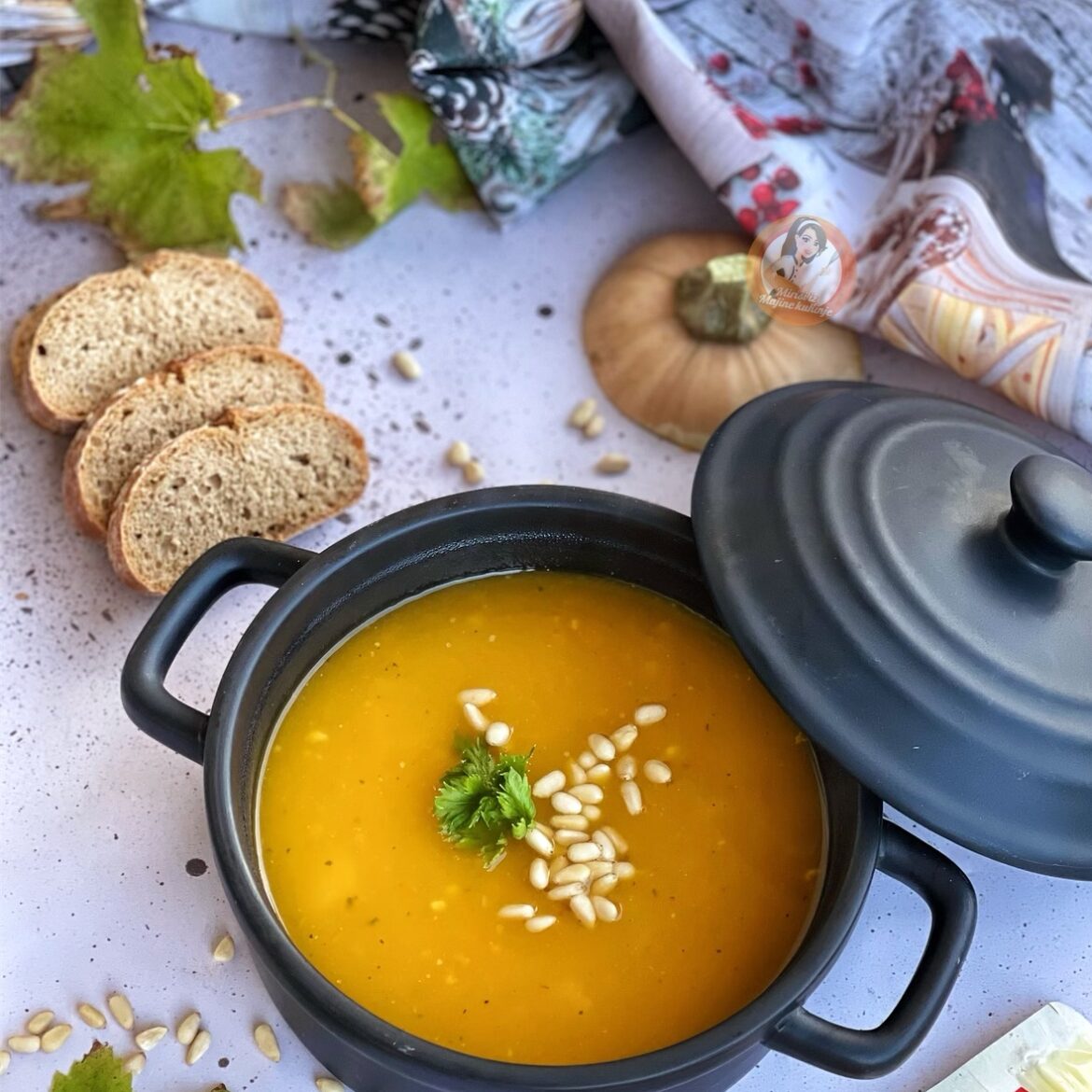 Luk i šargarepu isjeckati pa propržiti 7-8 minuta na ulju (u šerpi u kojoj će se kuvati potaž). Bundevu isjeckati na kockice, dodati u šerpu sa povrćem i naliti vodu. Kad voda provri kuvati dok bundeva i šargarepa ne omekšaju.
