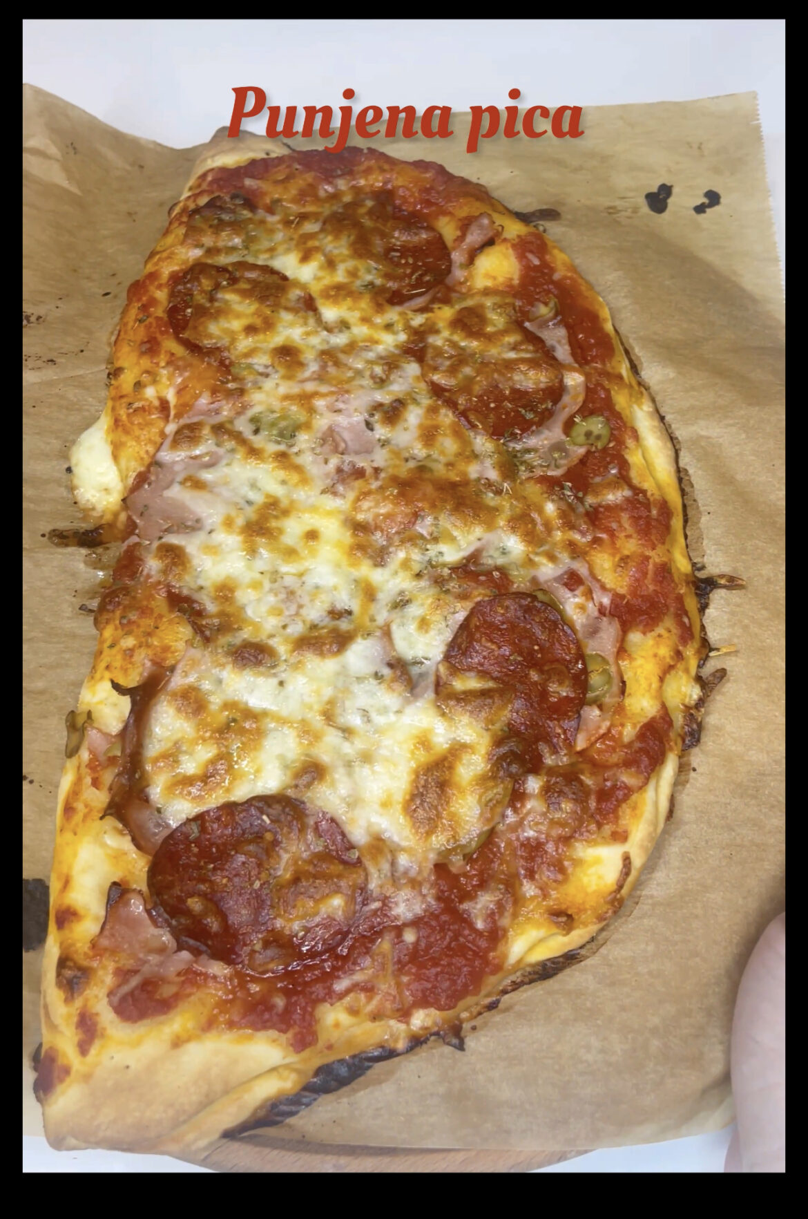Pecite na 250 stepeni nekih 10-ak minuta. Kada izvadite picu premažite je jednom uljem i lukom i uživajte.