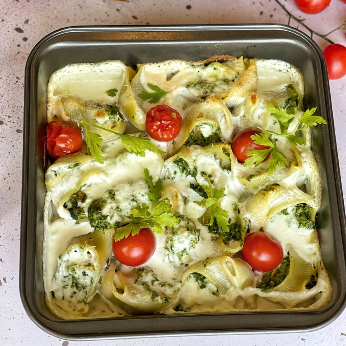 Piletinu ispecite. Ostavite sa strane. Na istoj masnoći stavite špinat, bijeli luk i 1 dcl vrhnja. Dodajte začine i krčkajte dok ne omekša špinat. Dodajte piletinu, ostatak vrhnja i dobro izmješajte.
