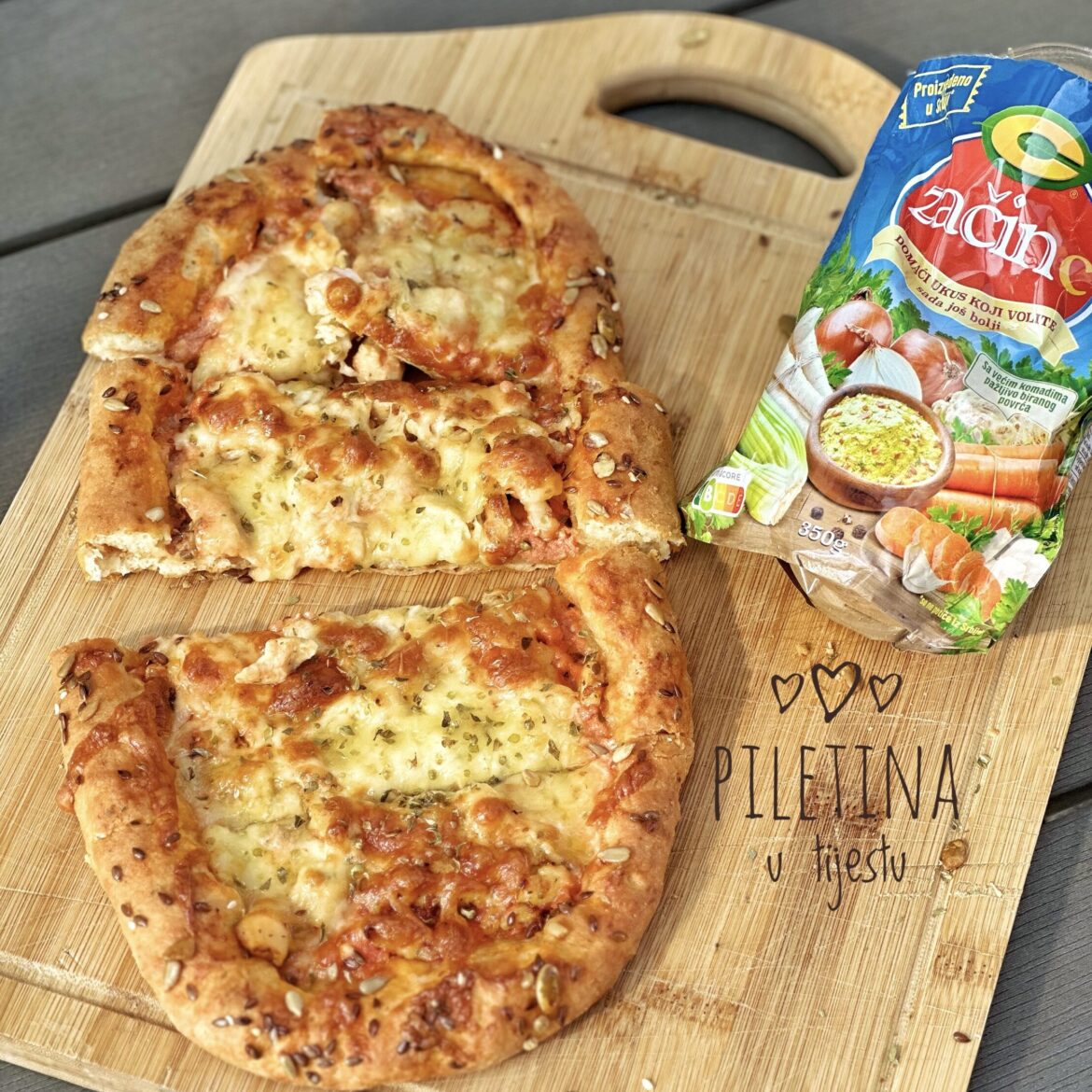 Razvucite tijesto i stavite prvo kašiku pavlake i kašiku kečapa pa pečenu piletinu. Dodajte sir i pecite u rerni na 220° dok ne porumeni. Prijatno.