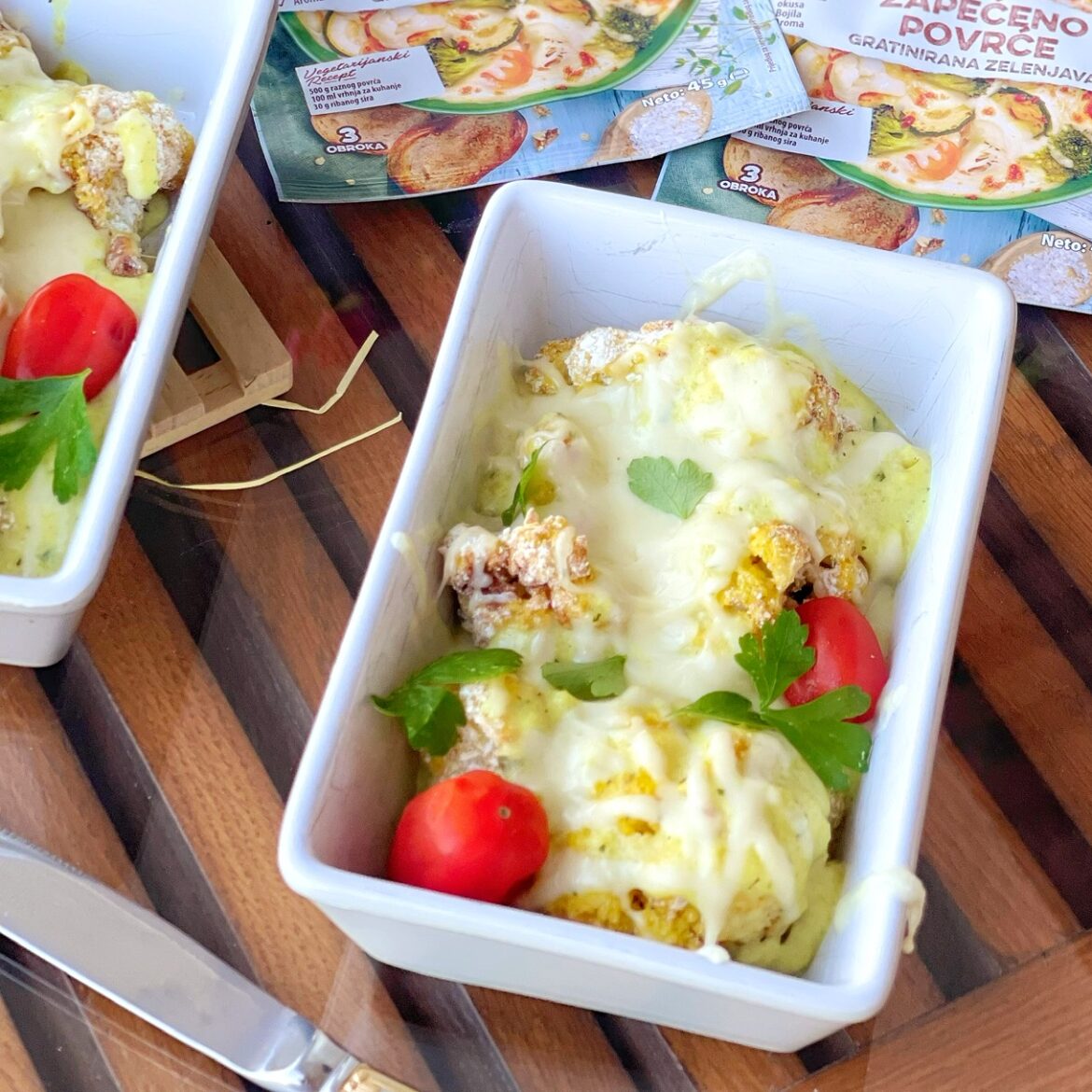 Karfiol skuhati 5 minuta te dodati začine. Nakon toga pohovati ga u prezle, jaja i brašno te ispeći bez ulja u fritezi (ako nemate pecite u dubokom ulju po 3 minute).