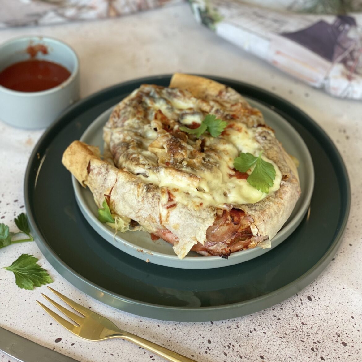 Treću koru isto kao prvu i dobro ih stisnite. Na vrh namažite maslinovo ulje i pržite u fritezi na 200° 13 minuta. Dodajte po vrhu sira i zapecite još 2 minuta. Uživajte. Prosto i lako.