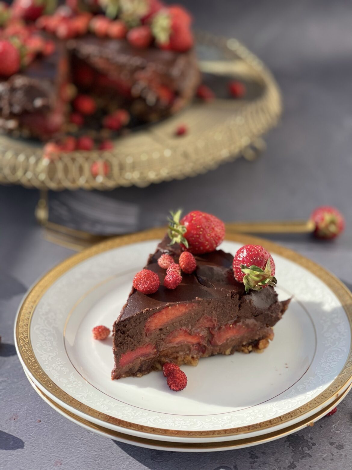 Sjedinite sa lješnjakom i stavite u kalup. Ostavite u zamrzivač dok pripremite ostalo. Namažite krem, stavite preko jagode nasječene na pola. Ganaš: istopite mlijeko sa čokoladom i pospite preko jagoda. Stavite u frižider i ohladite. Stavite po vrhu jagoda. Uživajte u ovom odličnom, brzom kolaču.