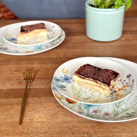 Keks namočite u mlijeko, redajte na podlogu. Stavite preko kremu. Na tu kremu još jedan sloj keksa pa opet krema. Nakon toga prelijete ganaš kremom (čokoladu samo istopite u vrhnju i ne dozvolite da zakuha, na niskoj temperaturi ovo uradite). Ja sam dodatno narendala čokolade da ukrasim. Ostavite minimalno 3,5 sata da se ohladi i stegne a najbolje preko noći. Prijatno.