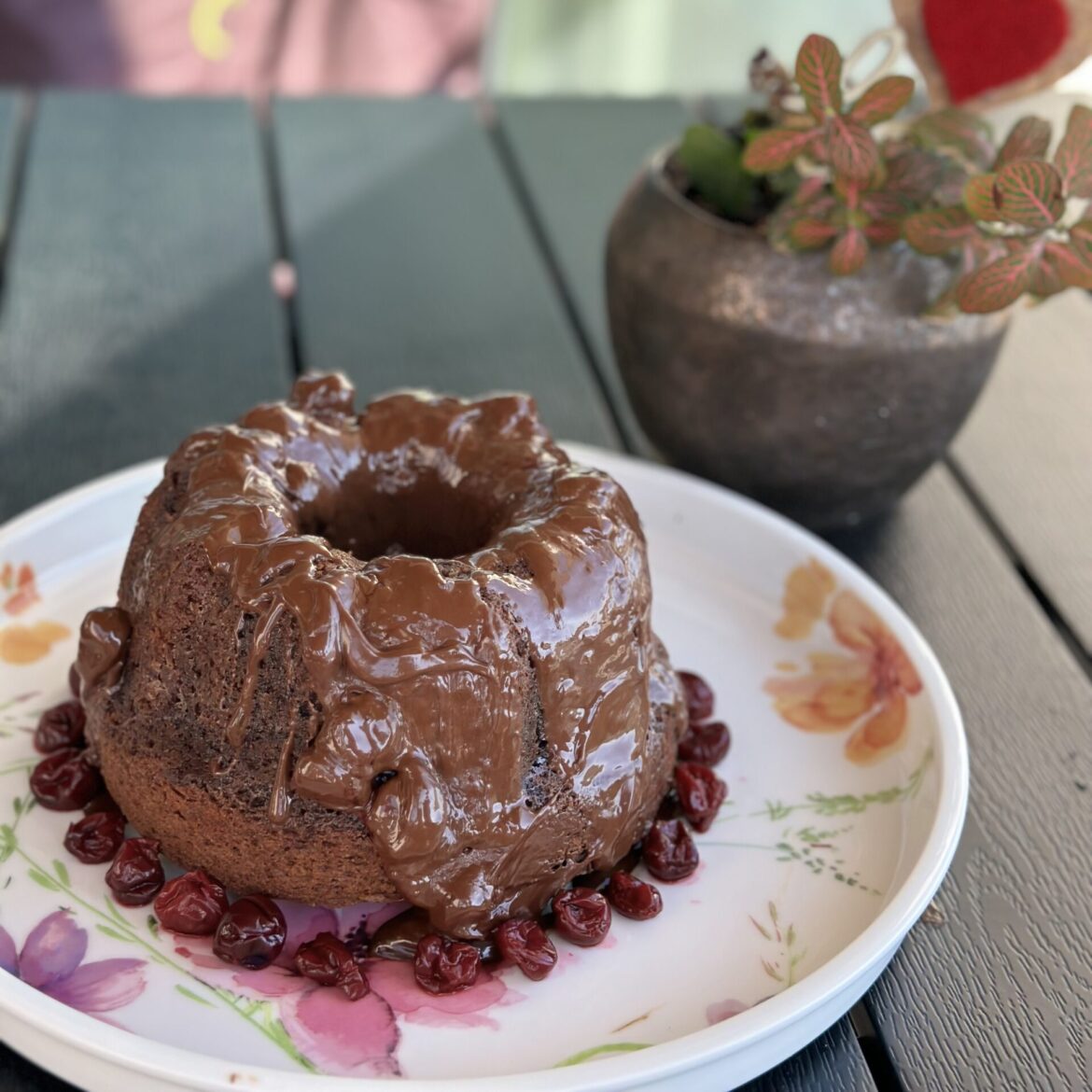 Čokoladu istopite u malo ulja i dodajte višnje. Mlak kuglof prelijete sa mlakom čokoladom. Prijatno.