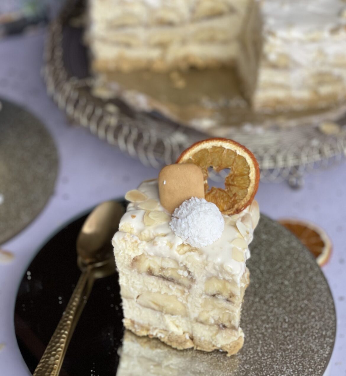 Redate ovako: kora, krema, banane presječene na pola i malo posute limunom, pa opet krema, banane pa na kraju krema. Ostavite da se dobro ohladi.