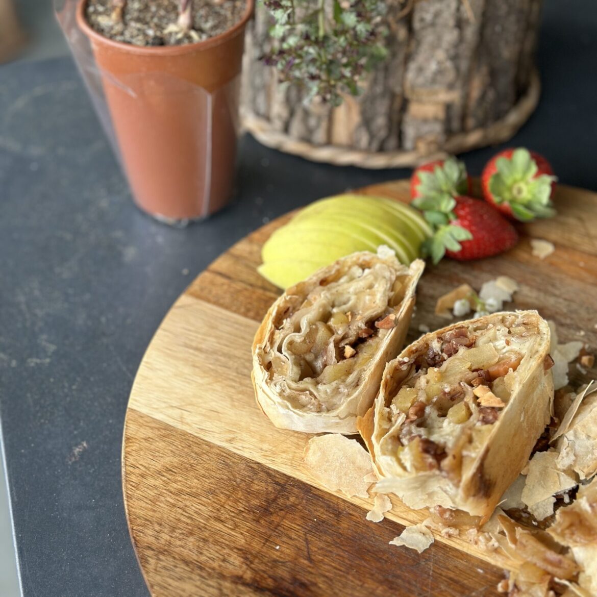 Kore savijete kao na snimku, namažete sa premazom pa stavite puding te jabuke. Urolajte kao ja i pecite na 220° dok ne porumeni. Prijatno.