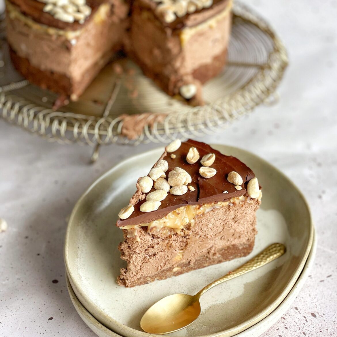 Za karamel istopite šećer na niskoj temperaturi dok ne dobije zlatno žutu boju. Ne miješajte, samo malo prodrmajte šerpu ukoliko je potrebno. Uspite lagano vrhnje i miješajte brzo. Dodajte maslac, vaniliju i ostavite na sobnoj temperaturi da se ohladi. Potom ubacite kikiriki. Prelijete preko fila. Ostavite u frižider da se ohladi.