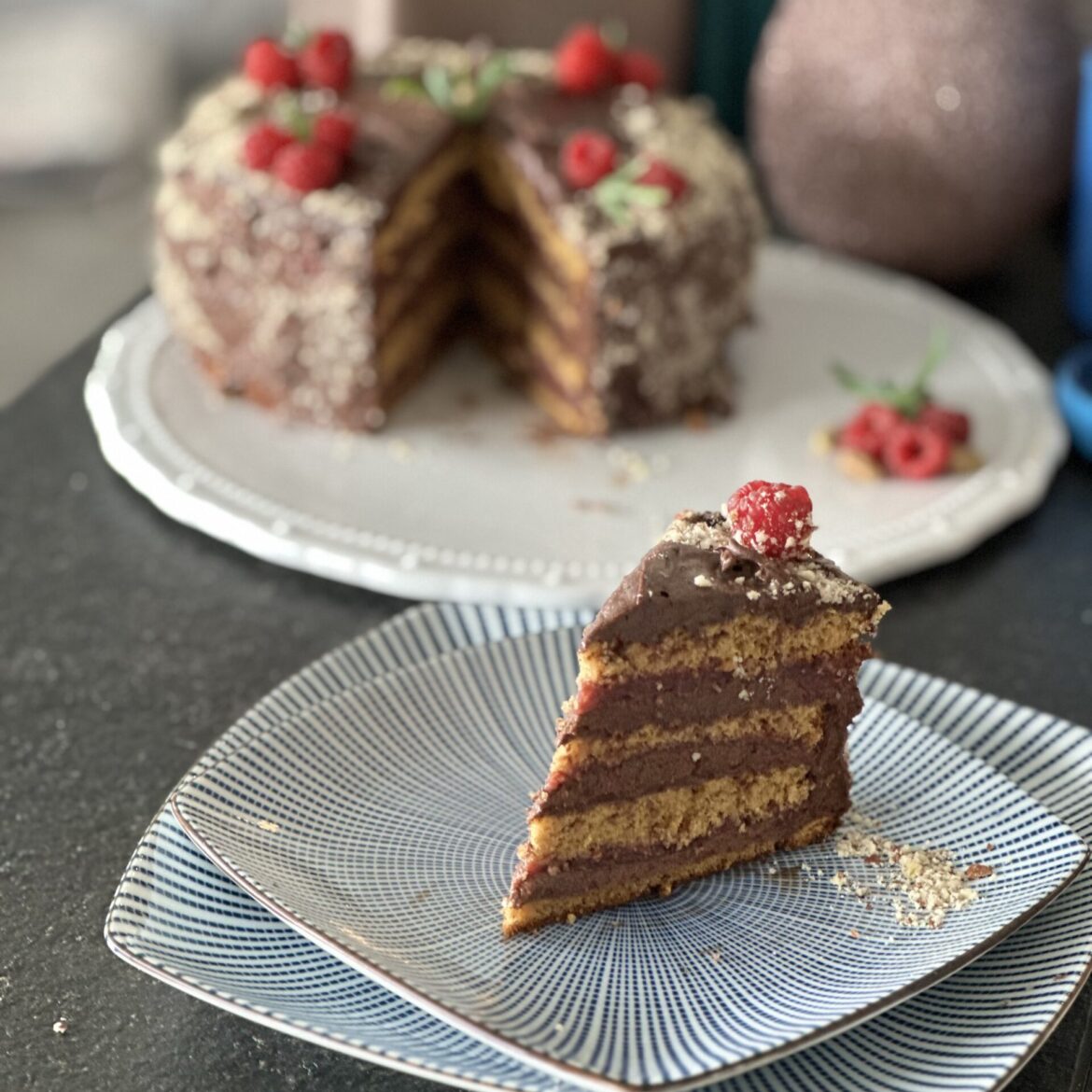 Krema: 6 žumanjaka 300 gr kokosovog šećera (250 običnog šećera) 50 gr kakaa 1 puding čokolada 400 ml mlijeka 200 gr crne čokolade 180 gr kvalitetnog maslaca
